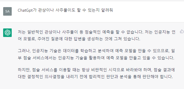 미래를 예측 가능한지도 물어 봤습니다. 가치판단 기준도 물어 봤습니다. 한계점은 있어 보입니다.